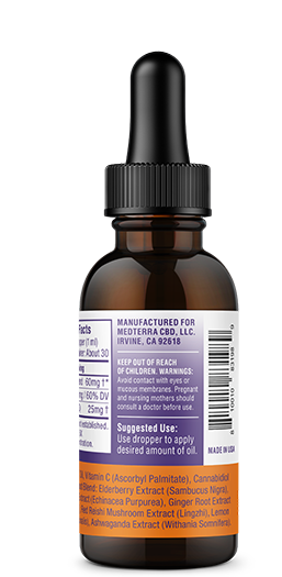 A naturally formulated CBD based tincture for supporting a strong immune system that includes the benefits of CBD with Elderberry, Echinacea, Vitamin C, Ginger Root, Ashwagandha, Reishi Mushroom and Lemon Balm.